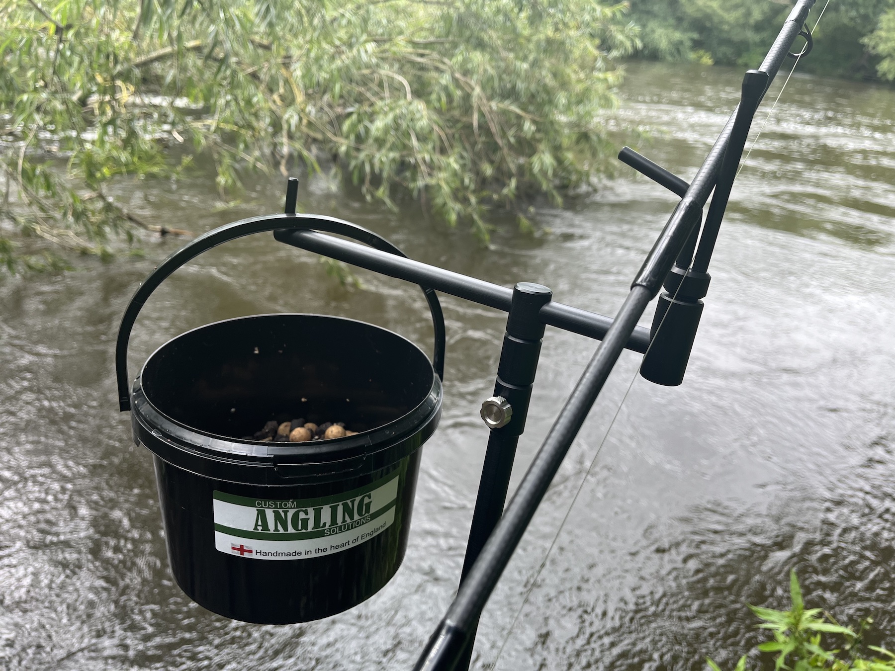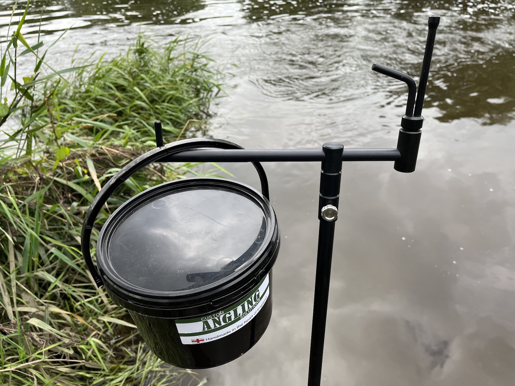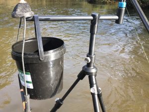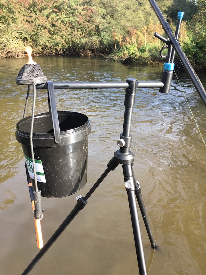The latest addition to the modulus range of bankware and perfect for fishing whilst mid river on either a single stick or tripod setup. Can be adjusted across the bar to suit various sized buckets (shown with our little 1ltr bucket (not included)) Also shown here with our resolute river rest (not included).