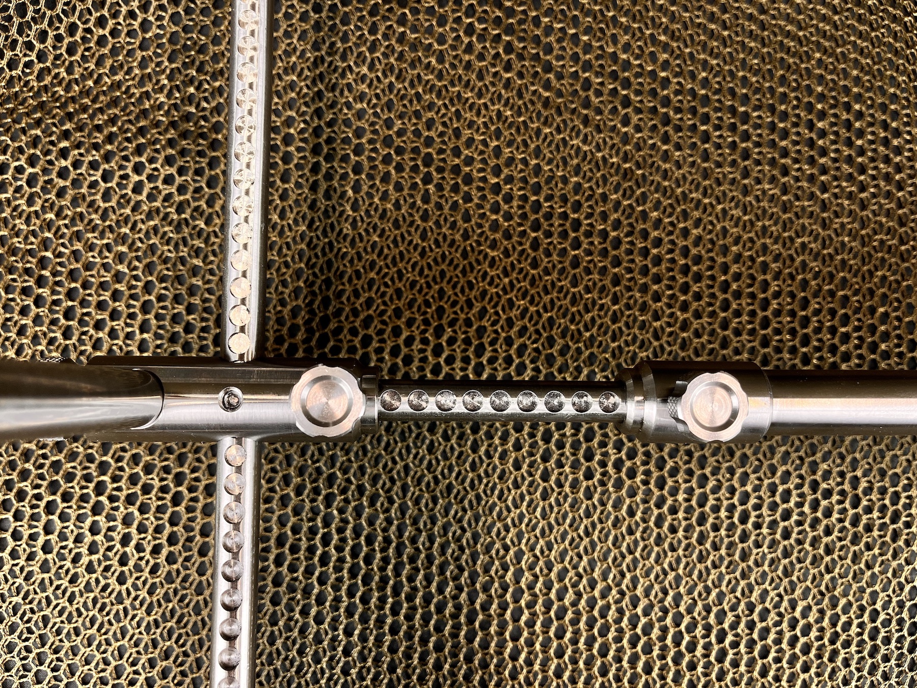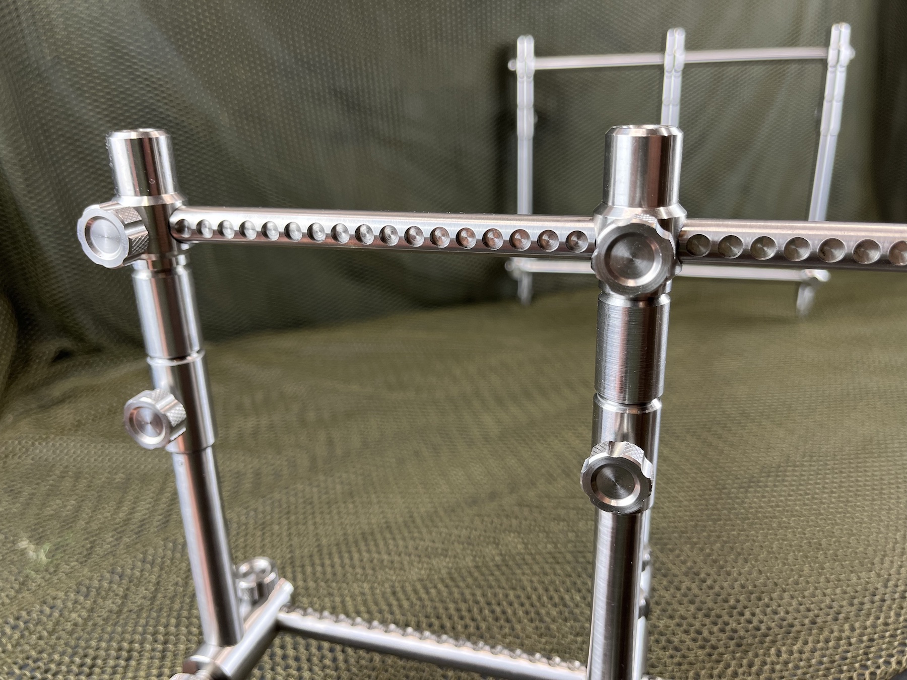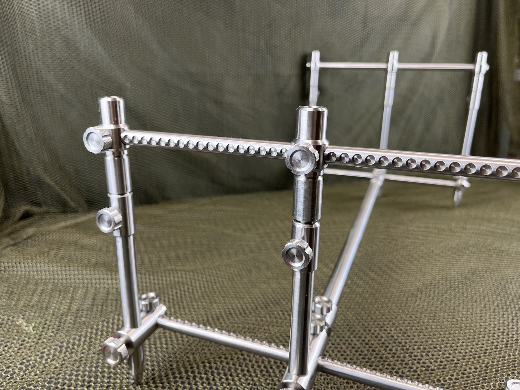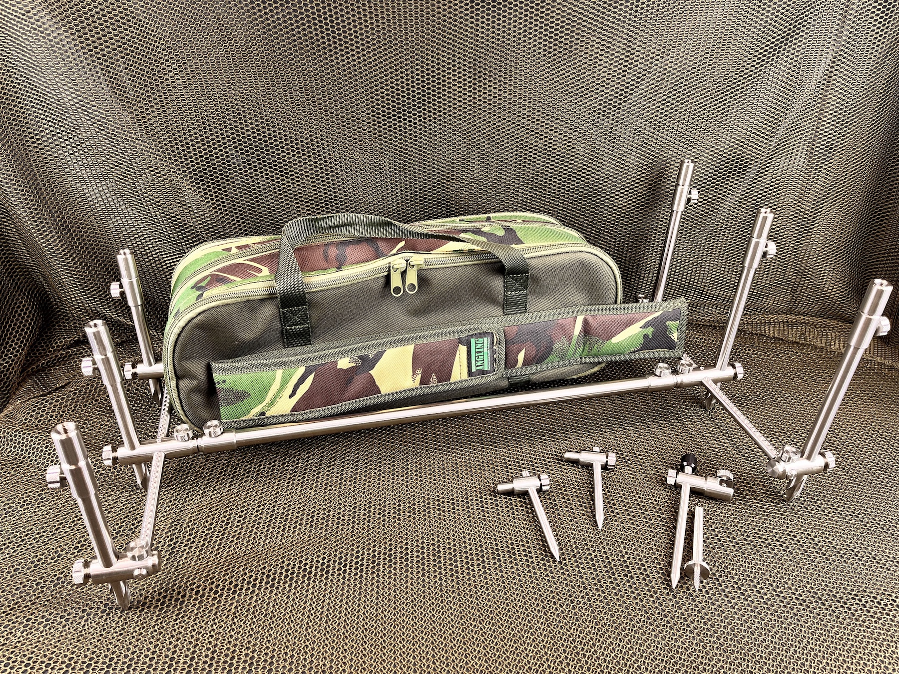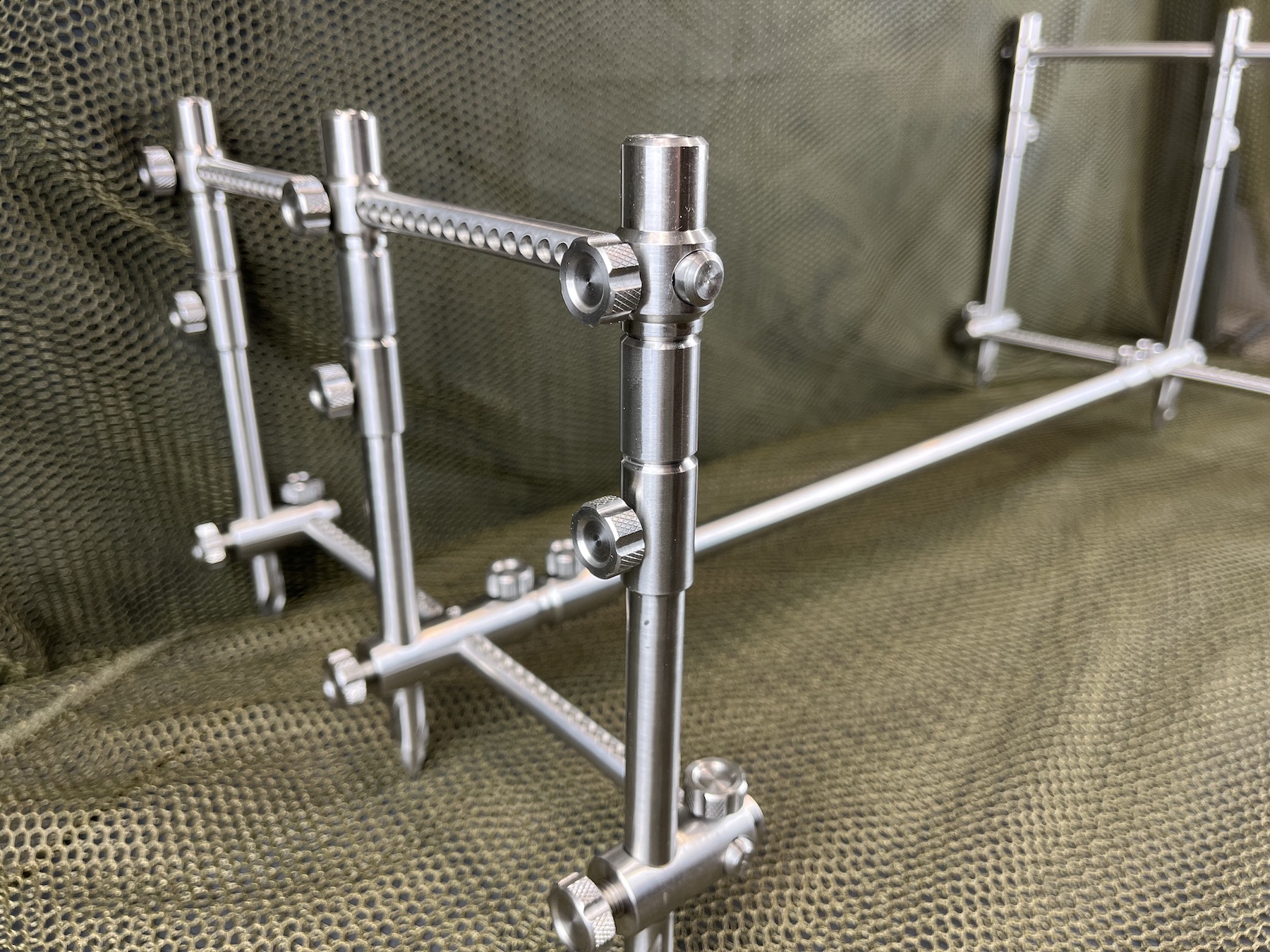 Quite simply the most advanced system developed to this point. This system is both a 3rod and 2rod system in one. By simply removing the internal adjustable bars this can easily be converted from the 3rod to 2rod setup. Simply loosening the thumb screws allows adjustment of both width and length. Available in Hybrid and Stainless versions and includes 2rod converter fittings and UK manufactured Pod Bag.